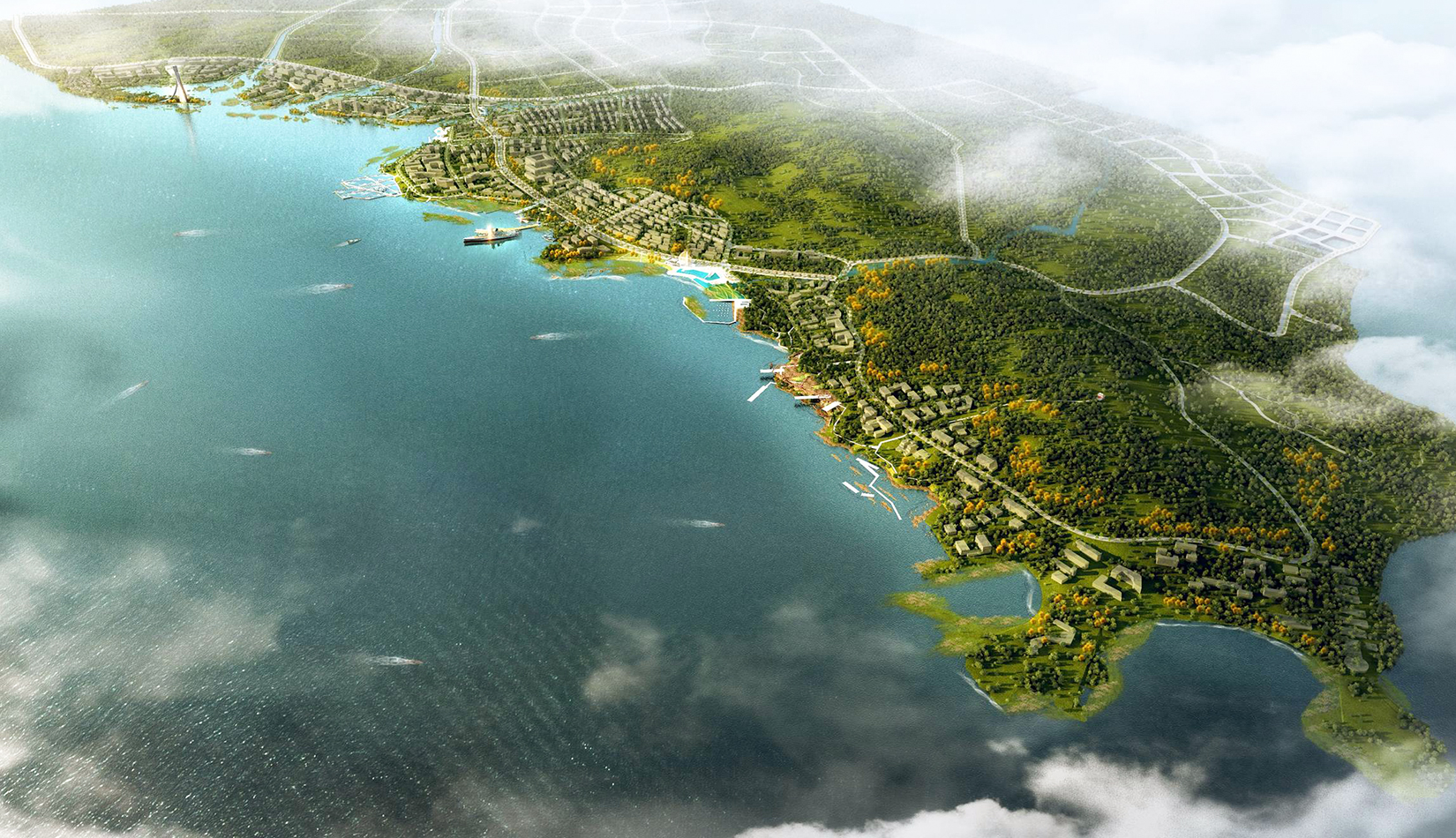 藍色硅谷在空間結構上共分為五個主要組團:遠期發(fā)展組團、居住休閑組團、旅游度假組團、核心商業(yè)組團及科技研發(fā)組團。