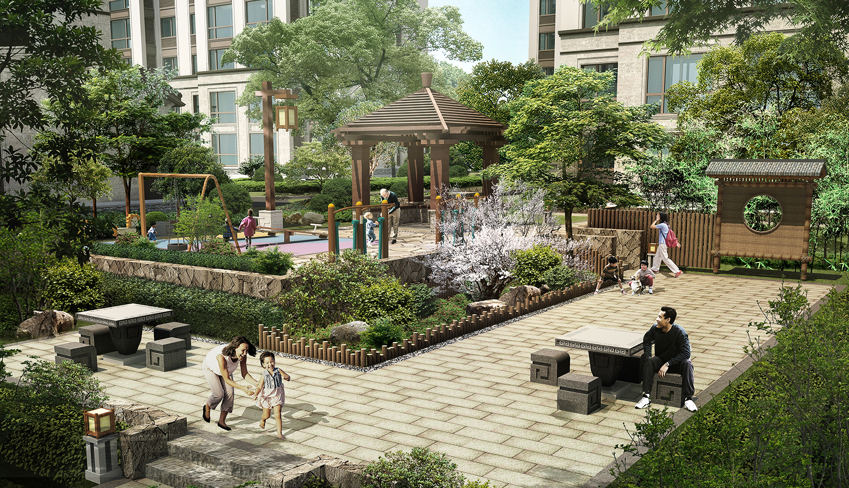 以“鄉(xiāng)村振興” 為背景,以“藏馬山居生活”為目標核心,項目把東方田園與住區(qū)生活融為一體、貫穿自然生態(tài)、海綿城市的設(shè)計理念。景觀設(shè)計挖掘藏馬山的特色文化,延續(xù)當?shù)鼐G色生態(tài)、山野趣味的自然風貌,通過場景化的展示,融入到景觀設(shè)計中,打造特點鮮明、各有特色的入口體驗、商業(yè)街區(qū)、山居生活三大板塊。
