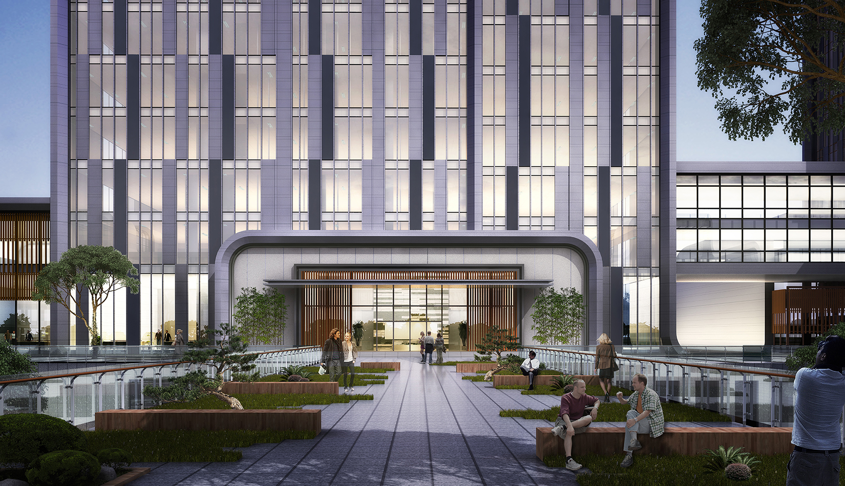 設(shè)計(jì)采用金屬板與玻璃為主要建筑材料,建筑高聳挺拔、簡(jiǎn)約大氣,極具現(xiàn)代感。