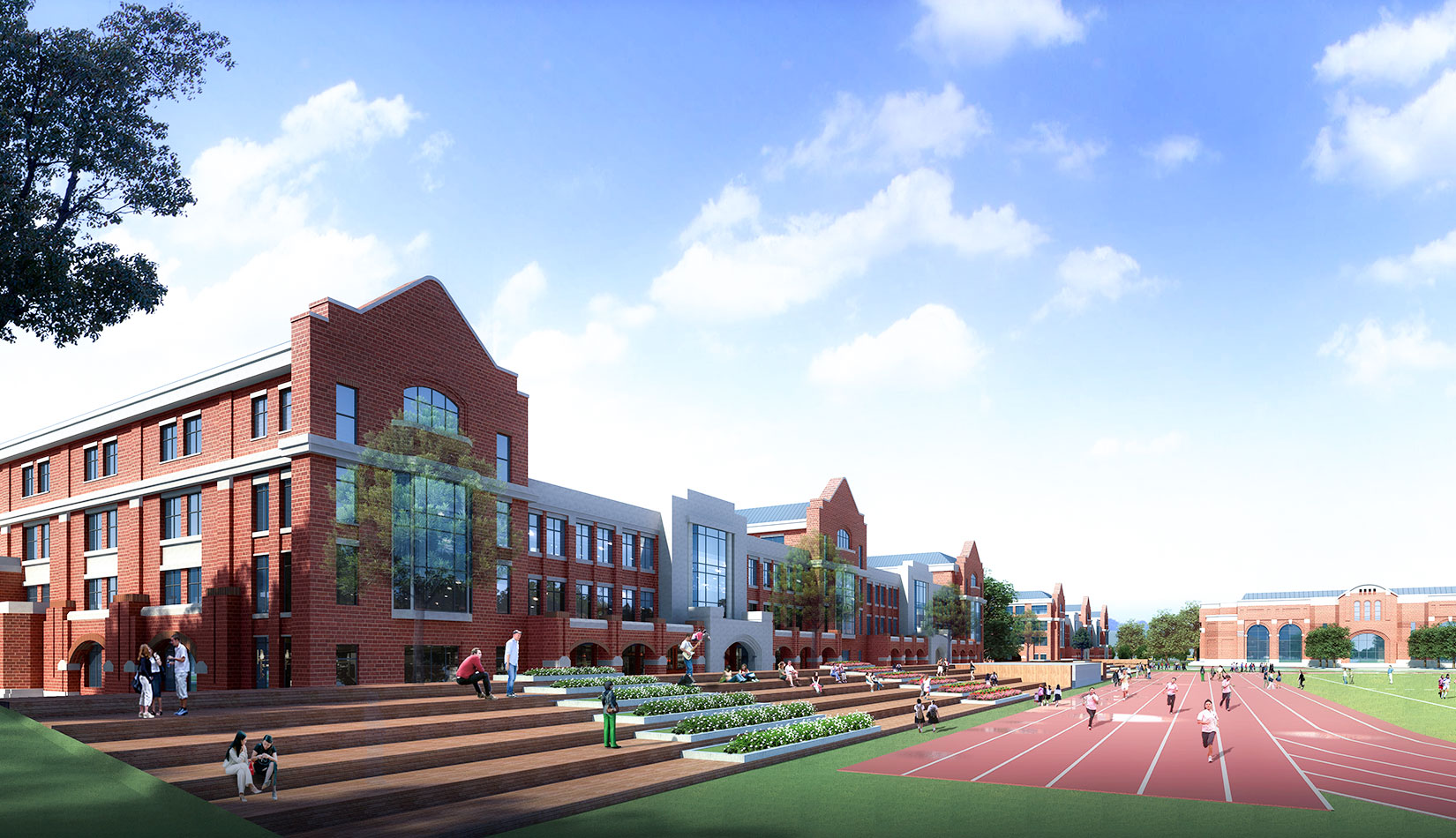 學(xué)校規(guī)劃設(shè)計(jì)中采用了中國(guó)傳統(tǒng)書院式軸線布局,將各個(gè)功能單體通過特有的風(fēng)雨廊聯(lián)系起來,形成了一個(gè)完整的有機(jī)整體,避免了傳統(tǒng)學(xué)校布局呆板、流線冗長(zhǎng)的缺陷。風(fēng)格方面采用了古典學(xué)院派的建筑風(fēng)格,著力塑造厚重的學(xué)院氣氛,力求打造百年名校的文化理念。綠色建筑方面,通過設(shè)計(jì)中利用被動(dòng)式的節(jié)能技術(shù)策略,力求打造省內(nèi)乃至國(guó)內(nèi)領(lǐng)先的綠色二星級(jí)校園建筑。
